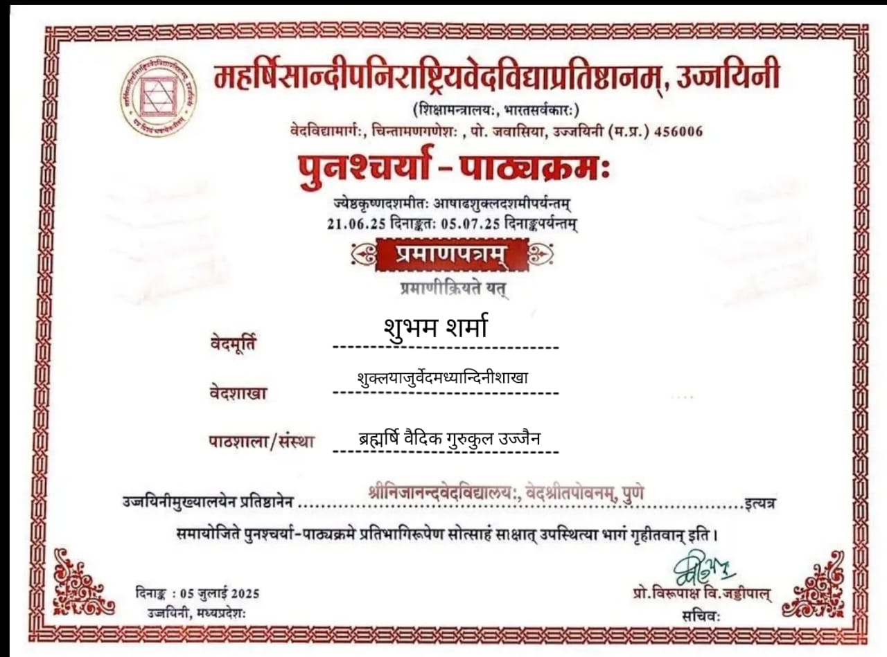|| CERTIFICATE OF MAA PITAMBARA SAMADHAN KENDRA ||